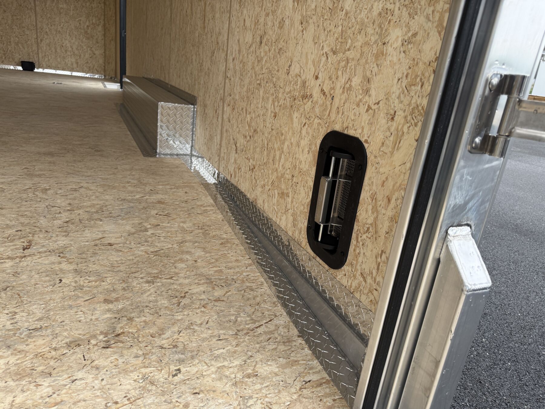 36’’ X 74’’ Aluminum Frame Radius Side Door W/ RV Latch and a Stainless Steel Barlock