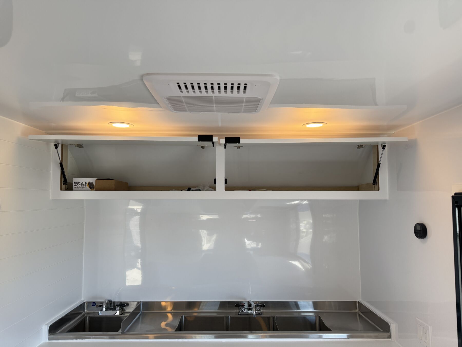 • Plumbing Package: (3-Compartment sink with drainboards, handwash sink, water heater, 30-Gal fresh, 40-Gal Grey tanks)